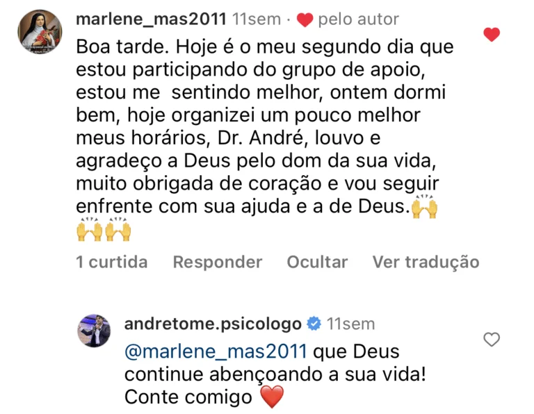 Eu sou especialista em ansiedade com abordagem cognitivo-comportamental. Criei a maior comunidade de suporte para ansiedade do Brasil, com mais de 28.000 pessoas.